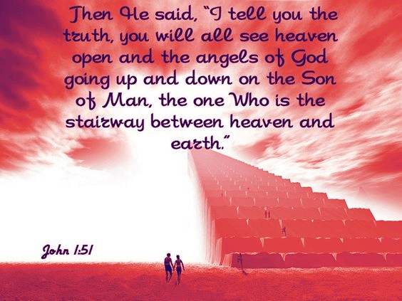 51 And he said to him, “Truly, truly, I say to you, you will see heaven opened, and the angels of God ascending and descending upon the Son of man.” (John 1:51)