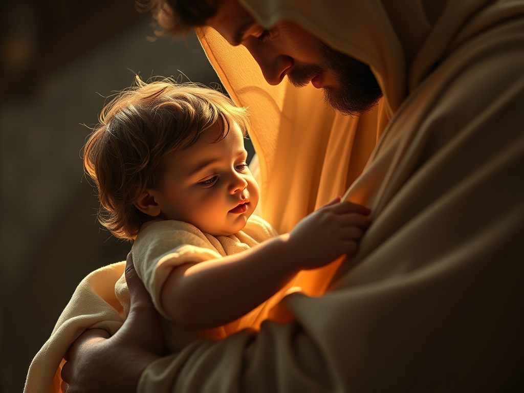 My lovable Jesus made Himself seen as a little child who, all clinging to me, made me many loving cuddles. Oh! how beautiful it is to see Him in His baby Humanity, all love, all trust. The soul feels so much trust with Jesus, because she sees in Him His Humanity, which is so much like her that they join together like brothers, they identify themselves with each other, and one is transformed into the other. So, the veil of the Humanity of Jesus, in which He encloses His adorable Divinity, serves as means of trust, by which the poor creature loses all fear, and remains all love with Jesus – more than a son in the arms of his Celestial Father. The love of Jesus is so great, that He says to the creature: ‘Do not fear, I am yours – similar to you, clothed like you; and my love is so great, that I hide the endless light of my majesty within my Humanity so as to have you be with Me like a little child in my arms.’ On the other hand, when my beloved Jesus makes His Divinity shine through Himself, His very Humanity remains eclipsed within that endless light, and I feel the great distance between me and my Creator. His blazing divine majesty annihilates me, I plunge myself into my dust; and not knowing where to go to escape His light, because there is not one point in which it is not present, I am the little atom that remains submerged within His very light. It seems to me that I am speaking nonsense, therefore I move on.
