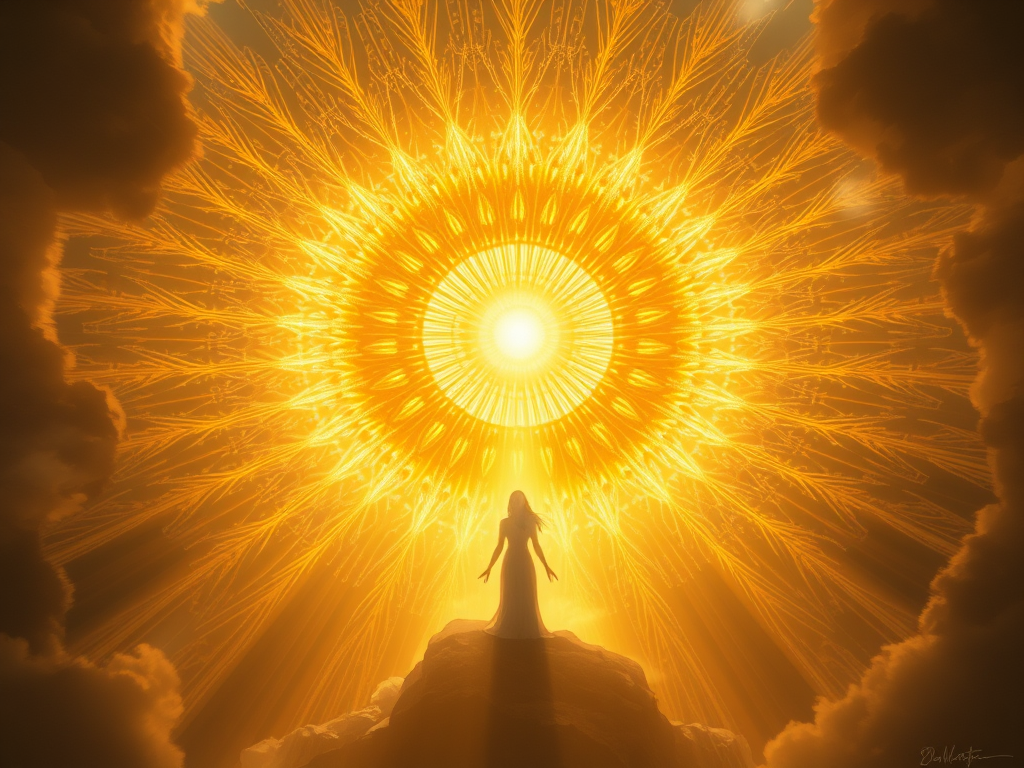 At that moment, I seemed to see a sun before my mind – however, not so small as the one which shines over our horizon, but so big as to surpass the entire surface of the earth. Even more, one could not see where its boundaries reached; and the rays it spread, forming an enchanting harmony around it, went up and down, and penetrated everywhere. In the center of this sun I could see the Humanity of Our Lord, which nourished Itself from this sun, and this sun formed the whole of Its life. It received everything from the sun, and It gave everything back to it, and, like beneficial rain, it spread over the whole human family. What an enchanting sight. Then, my sweet Jesus added: